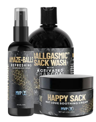 The Baller Power Bundle Ball-Wash Kit is like an all-inclusive vacation for your most valuable assets. It includes everything you need to keep your man sack dry, cool, and smelling amazing. Plus, your butt and body will never be the same again.