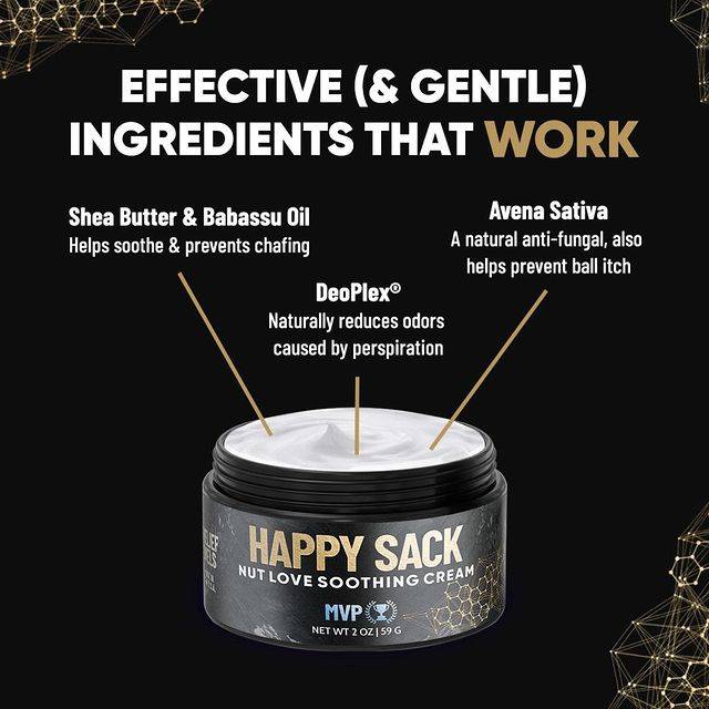 Aloe Vera, Avena Sativa and other natural, anti-fungal ingredients help protect against itching, chafing, sweating swamp sack. Plus, your balls will actually feel cool (really)