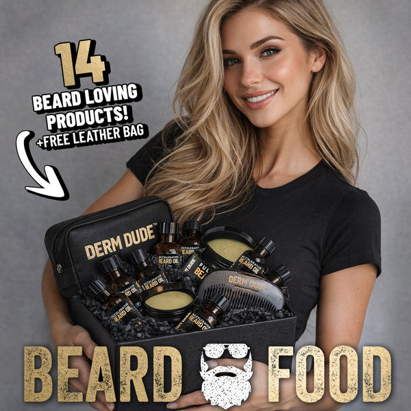 Inside this Mystery Beard Box you’ll find 14+ full-size Derm Dude beard essentials designed to take your beard from scruffy to legendary. Classic scents, premium oils, balms, washes, and other beard-first favorites every bearded dude needs.