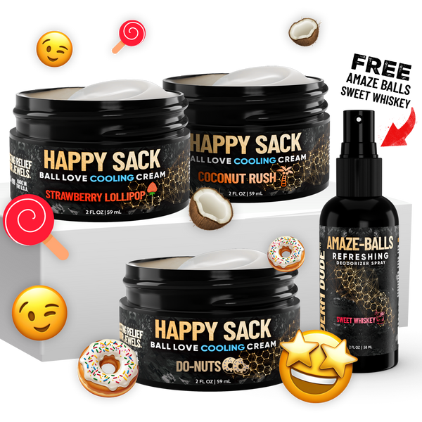Struggling with sweaty, stinky balls? Our best-selling Happy Sack Ball Love Cooling Cream eliminate odors keeping you cool and fresh all day long!